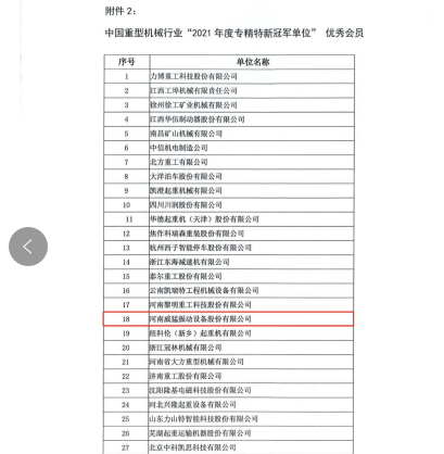 6月13日,中國重型機械工業協會發布了“2021年度會員單位”入圍授獎企業名單,河南威猛振動榮獲中國重型機械行業“2021年度專精特新單位”。公司長期以來...